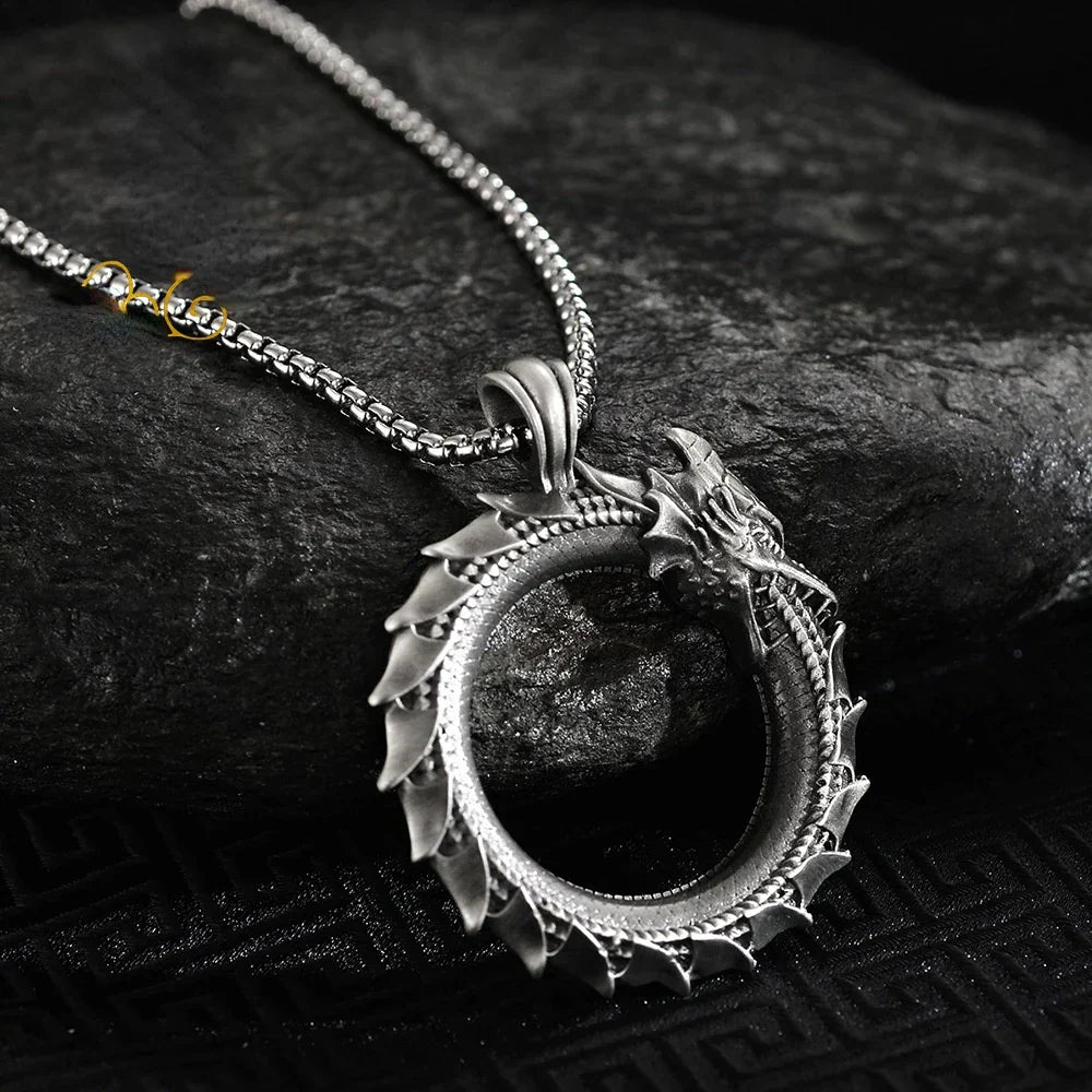 🐉 Simple Retro Circle Dragon Pendant Necklace – Punk Motorcycle Party Jewelry for Men & Women 🖤🐍