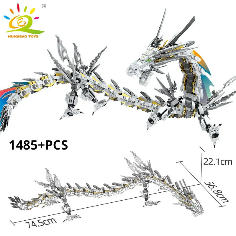 Unleash creativity with the HUIQIBAO White Dragon Model Building Blocks β a 1485-piece set inspired by movie series, perfect for children and friends to build, learn, and play together.